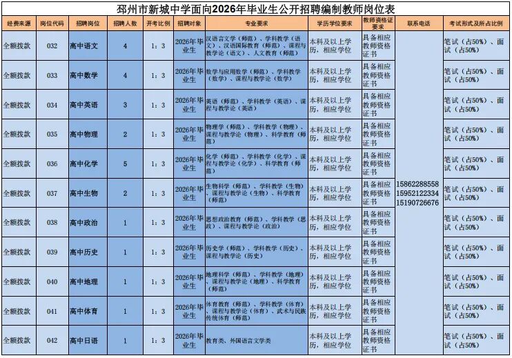 1.邳州市面向2026年毕业生公开招聘编制教师岗位表