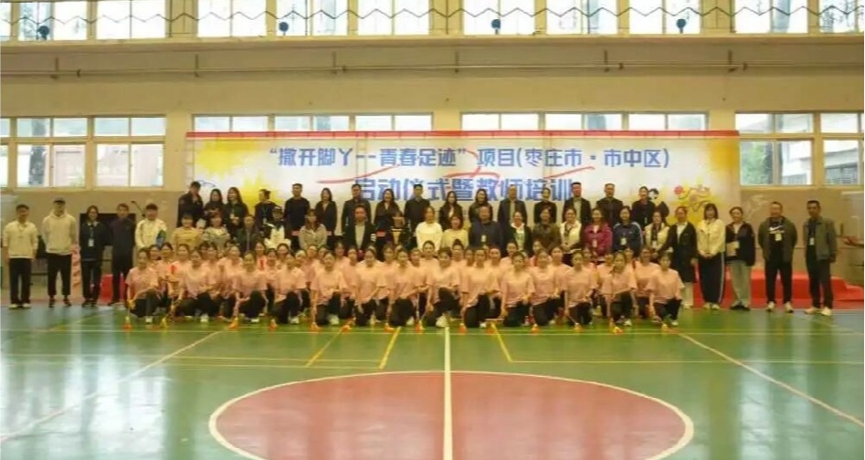 10月18日上午,“撒开脚丫-青春足迹”项目启动仪式在枣庄学院体育学院篮球馆隆重举行。耐克体育(中国)有限公司公益部项目经理蒋秋榕、中国乡村发展基金会项目主管吴姣仪与项目官员王爽、项目总培训师及督导黄楠等核心培训师团队,以及枣庄学院团委副书记姜周、枣庄学院体育学院党委书记高原、枣庄学院体育学院副院长李丽,中共枣庄市市中区委社会工作部部长种亚昆、共青团市中区委书记高敬娜、区教育与体育局党组成员、体育事业发展中心党组书记、主任狄崇伟、区教体局体卫艺股主任田思响等单位的领导与嘉宾共同出席。