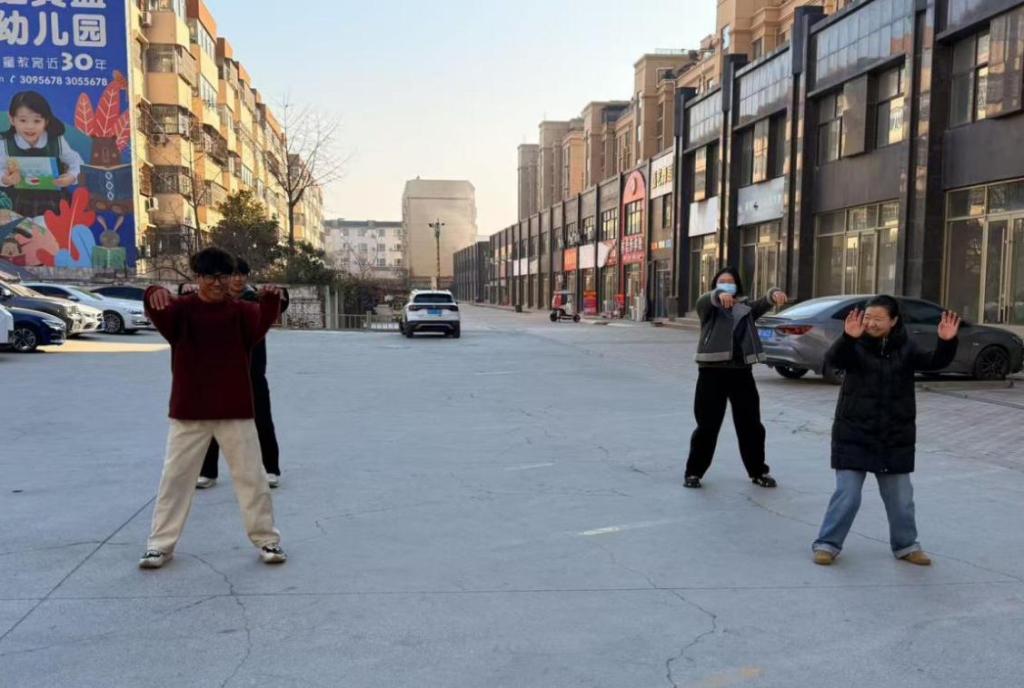 活动伊始,志愿者们用活力四射的啦啦操、优雅的摩登舞和刚柔并济的武术表演,充分展现了体育的多元魅力。武术表演后,志愿者们邀请现场观众一同上场,亲身学习、体验基本招式,将现场气氛推向高潮。在志愿者的热情带动下,居民们不仅初步领略了武术的魅力,更在互动中增进了交流,尽显中华传统武术的深厚底蕴。