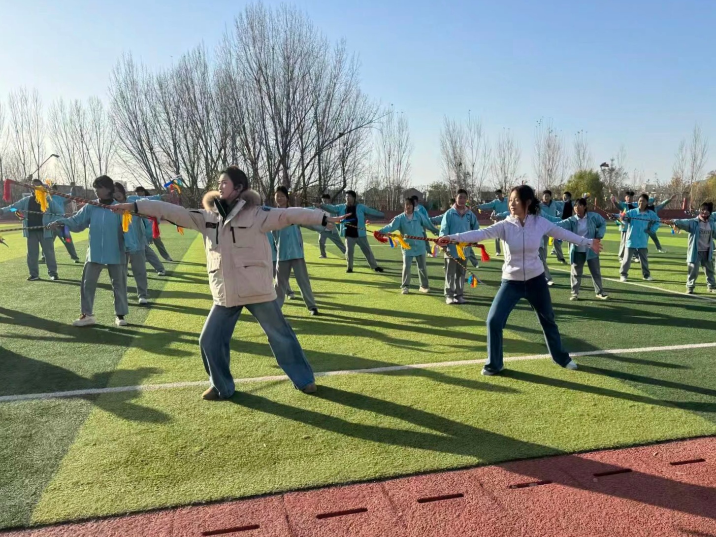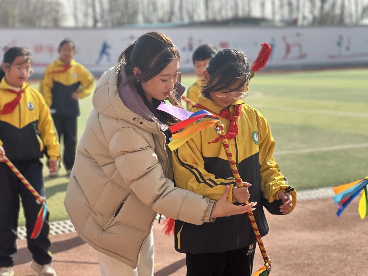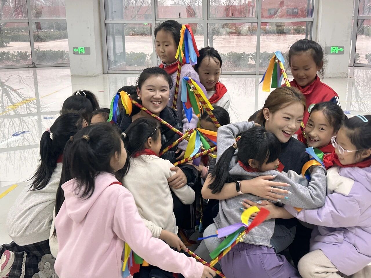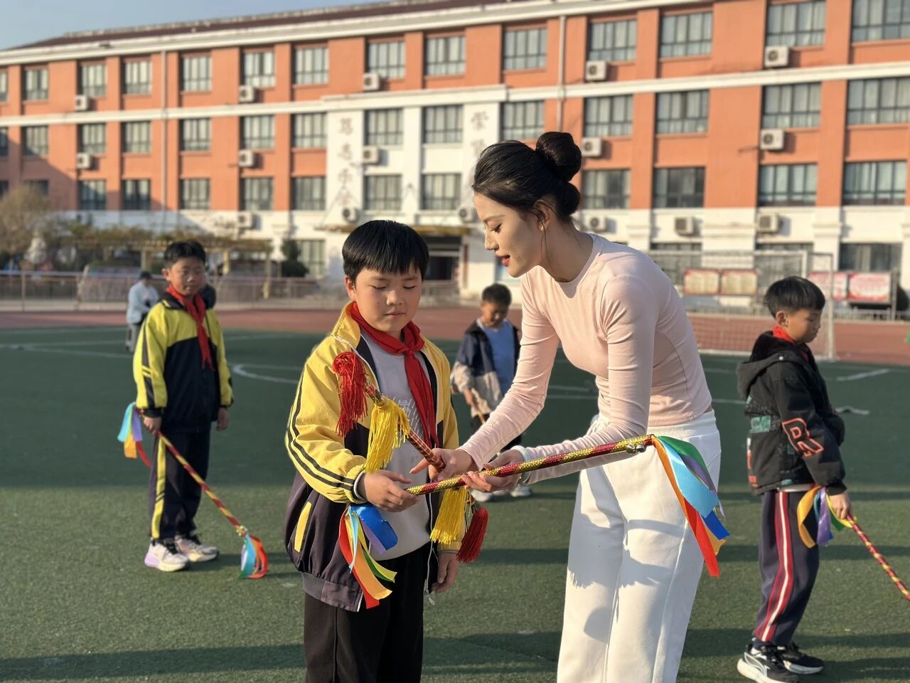 志愿者们巧妙地将专业所学与非遗传承相结合,把一个个花棍动作分解成有趣的小游戏。在欢声笑语中,孩子们从零基础到熟练掌握,从羞涩尝试到自信展示。志愿者们不仅是老师,更是孩子们亲切的“大姐姐”,用耐心和热情点燃了孩子们对传统体育文化的热爱。